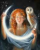 «Рыжеволосая девушка с совой и месяцем»